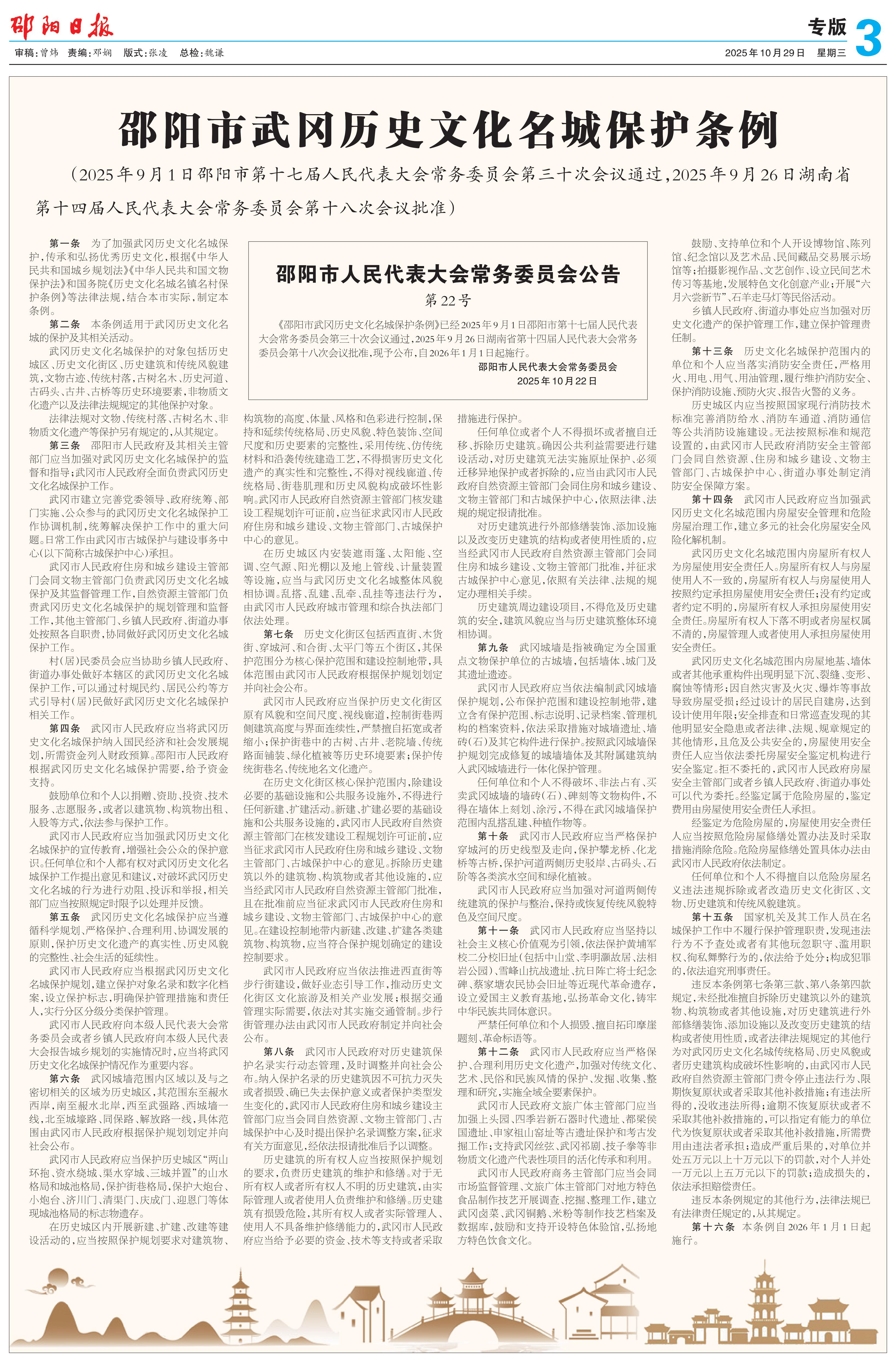 邵阳市武冈历史文化名城保护条例