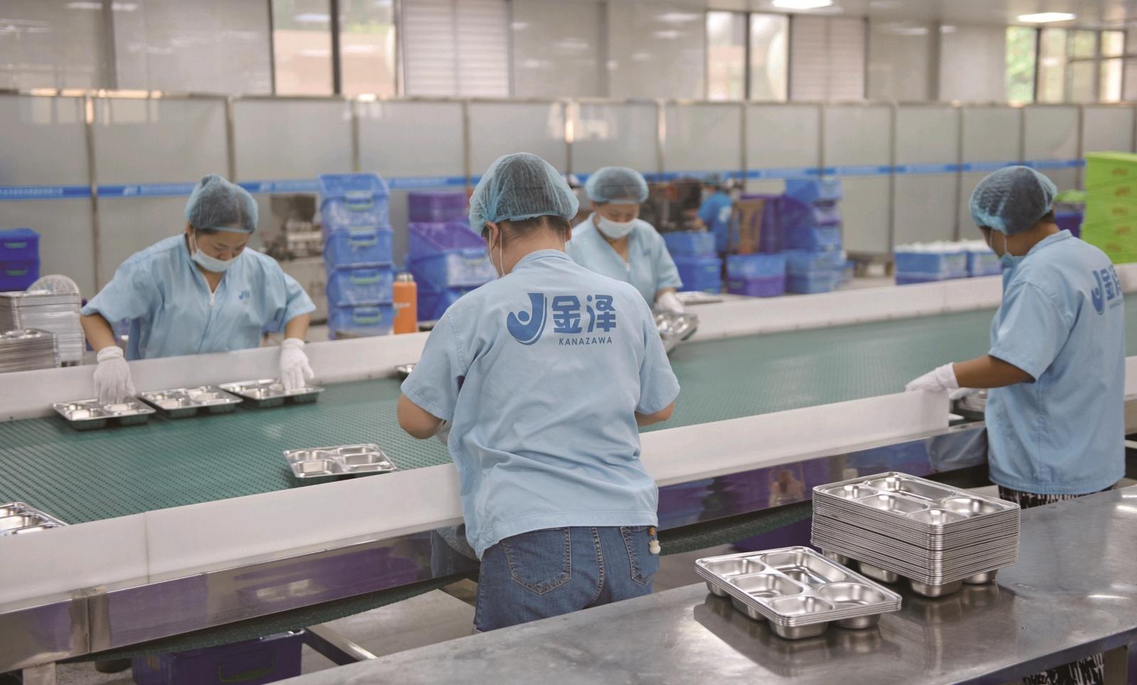 邵阳市康洁消毒中心位于北塔区西湖北路湘窖酒业附近,是一家拥有3条先进生产线的餐具消毒企业。目前,该企业服务600余家餐饮企业,承担市区超75%公共餐饮餐具配送,市区餐馆市场份额超90%。图为9月19日,生产线上工人正在筛选学生餐具。