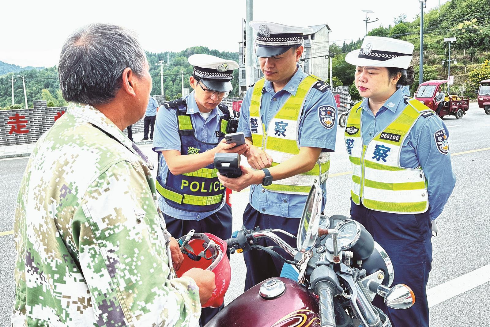 9月21日,执勤交警在依法查处交通违法行为。国庆、中秋“双节”临近,绥宁县公安局交通警察大队联合多部门,开展节前道路交通安全集中专项整治行动。