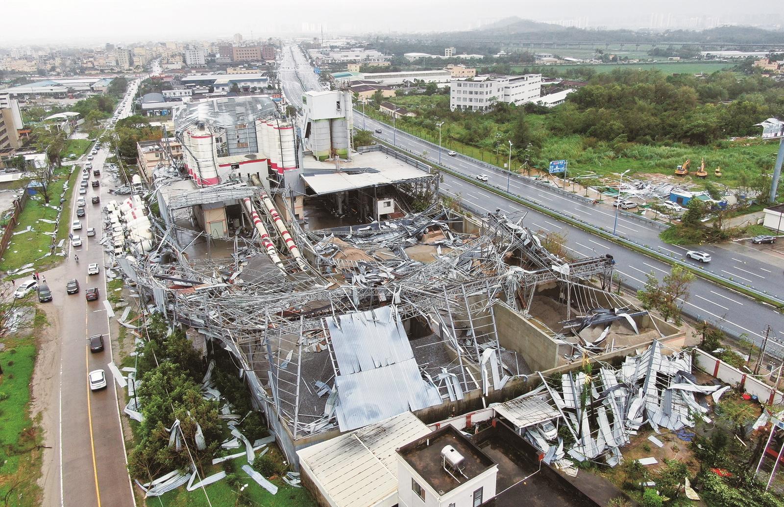 今年第18号台风“桦加沙”于9月24日17时前后在广东阳江市海陵岛登陆,登陆时中心附近最大风力13级(40米/秒,台风级),中心最低气压955百帕。目前,台风“桦加沙”已经移出广东。图为9月25日,在广东阳江市新睿建材有限公司,台风过后一片狼藉(无人机照片)。