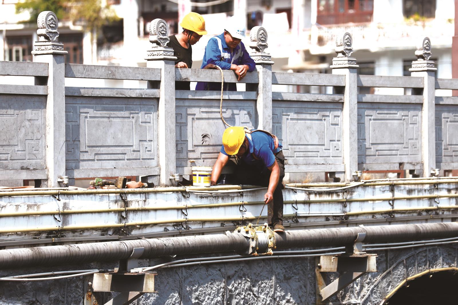 绥宁九丰能源科技有限公司员工对管道进行定期检查与保养作业