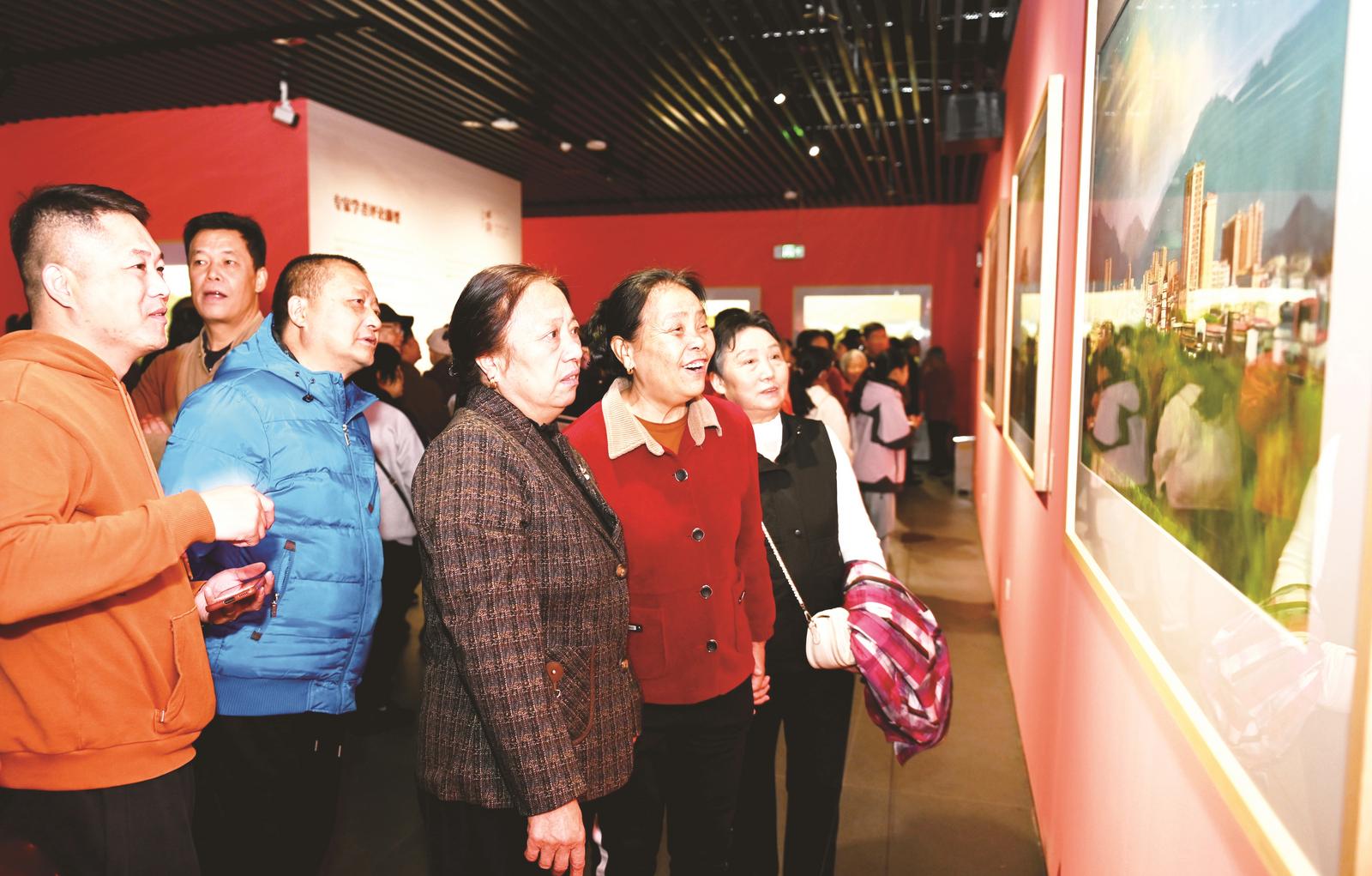 10月25日,观众在洞口县美术馆参观美术作品展。连日来,该县举行“回乡”——黄铁山水彩画艺术展,展出黄铁山捐赠给家乡的100幅美术作品,吸引了众多市民前来观赏。