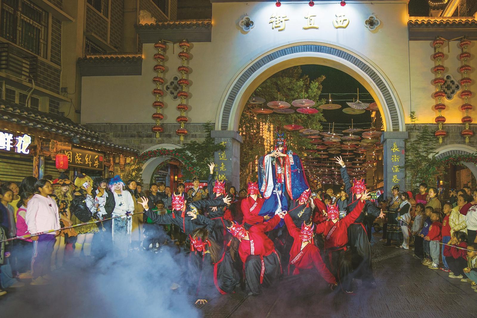 11月1日晚,武冈西直街上演非遗傩舞,吸引众多市民驻足欣赏。近年来,该市高度重视非遗文化的挖掘与传承工作,通过悉心培养傩舞传承人,让这一古老艺术焕发出新生机。