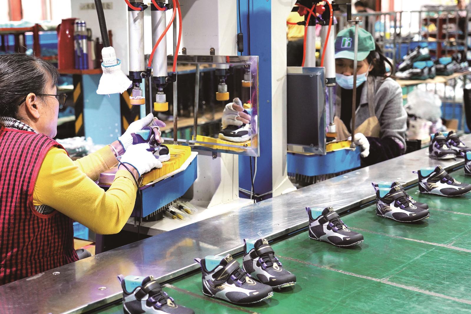 11月11日,隆回县高新区产业园工人在生产运动鞋。该园区现有高新技术企业63家,通过助推企业与高等院校、科研院所或知名专家合作,积极推进“智赋万企”行动。