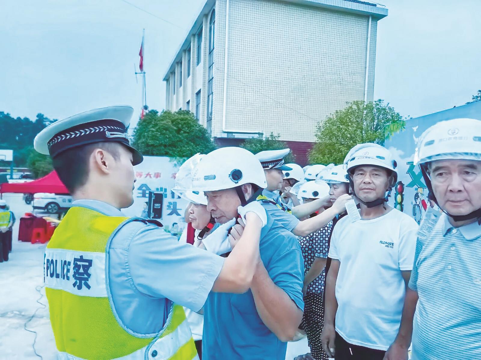 9月18日,洞口交警走进花园镇新兴村,开展“头等大事 幸‘盔’有你”交通安全宣传活动。图为民警向驾乘人员现场演示安全头盔的正确佩戴方法。 艾哲 雷铖 袁斌 摄影报道