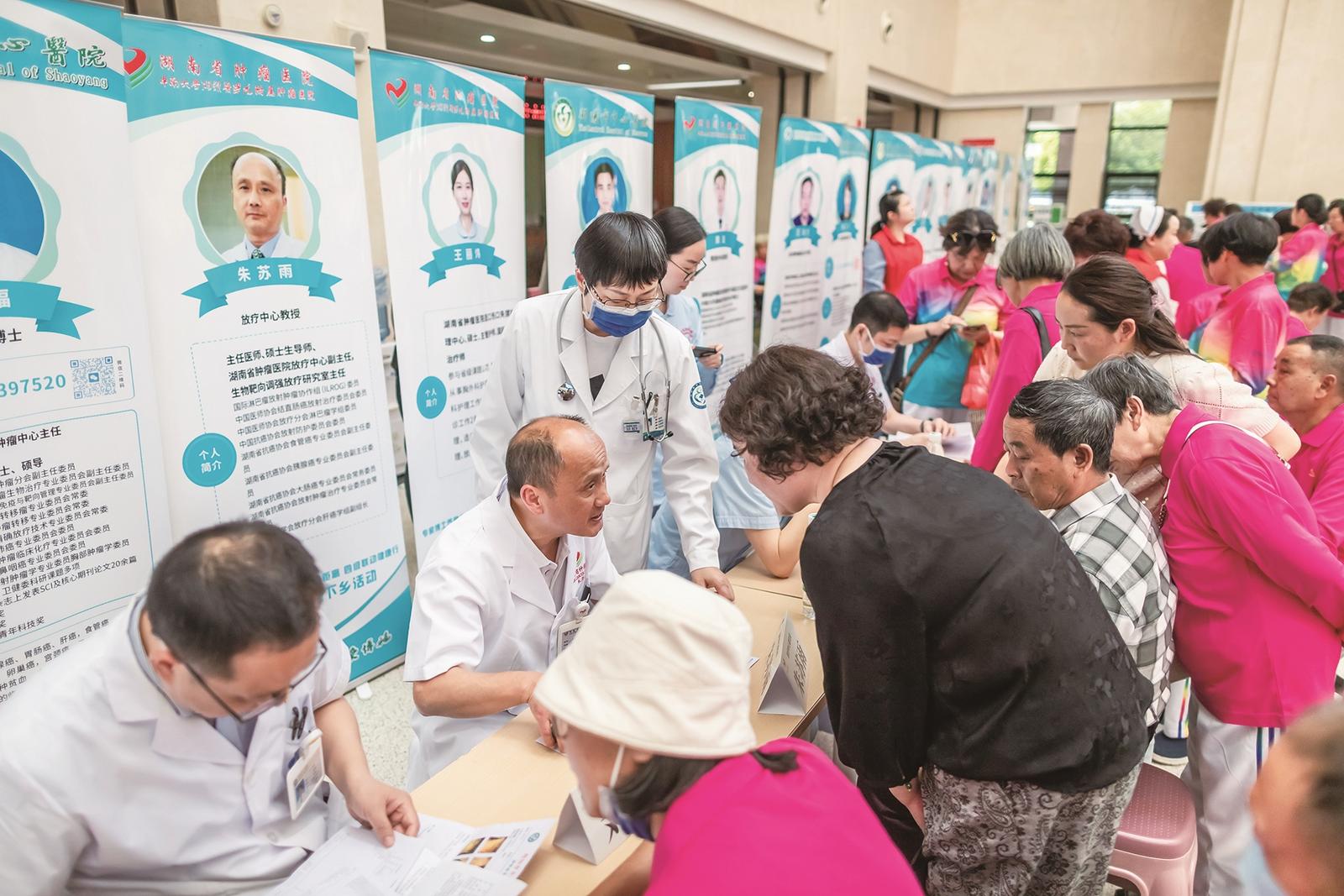 湖南省肿瘤医院帮扶专家在邵阳市中心医院东院为群众义诊。