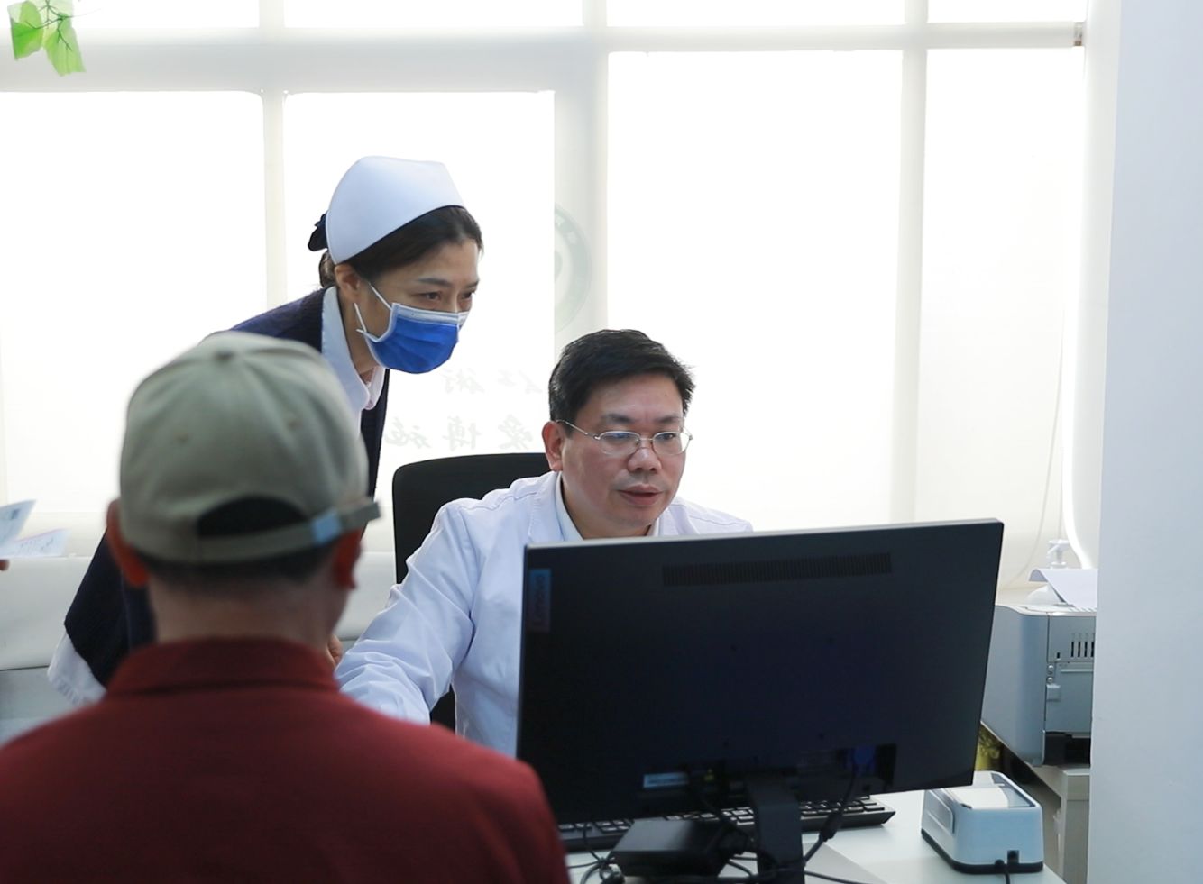 挂职邵阳市中心医院副院长的湖南省肿瘤医院专家王伟接诊门诊患者。