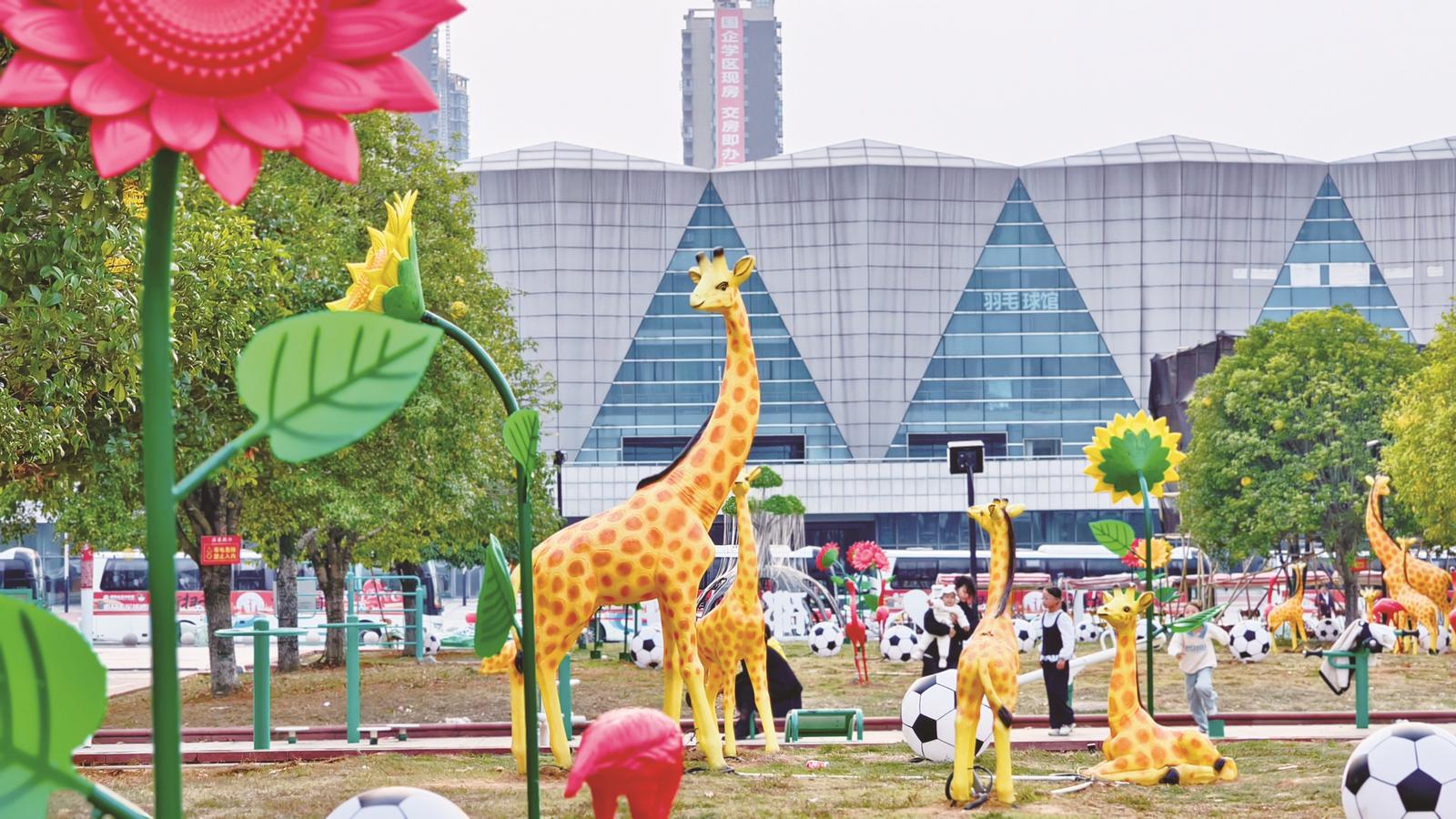在场馆内外,邵阳城发集团精心布局多元消费场景:东广场集集装箱夜市、5D裸眼大屏、“邵阳红”“非遗”展区、潮玩舞台、文化长廊、儿童灯光秀于一体;西广场设置“奔跑吧·邵阳”主题生命树造型,规划举办创业集市、货物展销、年货集市等未来市集;场馆内设置网红打卡点与大量广告位,吸引人流、聚集人气。这一布局不仅满足不同人群需求,更将邵阳的特色产品、非遗文化、旅游资源集中展示销售,实现“一场比赛,多重体验”的效果。