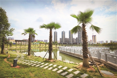 8月4日,施工人员正在加固绿化亮化地灯。目前,市区西苑公园入口广场、人工湖等工程建设已完成施工,配套设施正在进一步完善中。共完成建设面积12万平方米,累计完成投资3.34亿元。