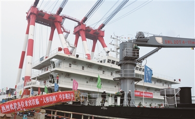 刘自明表示,近年来中铁大桥局桥梁建设的重点从内陆向海洋转移,目前已经拥有10艘能够满足海上作业需求的船舶。“大桥海鸥”号是目前国内起重量最大、起升高度最高的起重船,它的入列,将提高我国海洋桥梁建设的能力。