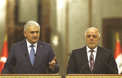 去年下半年,土伊两国的口水仗不断升级。10月初,两国相互召见对方使节。伊拉克甚至警告,土耳其的行为可能挑起“地区战争”。当月中旬,两国领导人隔空对骂。伊拉克总理阿巴迪要求土耳其撤走驻扎在伊拉克境内的2000名士兵,并敦促土总统埃尔多安“找准自己的位置”。埃尔多安则批评阿巴迪“没资格和自己对话”。