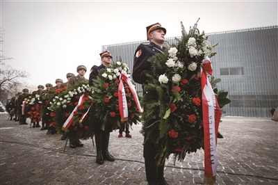 波兰首都华沙27日举行奥斯威辛集中营解放74周年纪念活动。奥斯威辛集中营1940年由纳粹德国在波兰建成,是纳粹德国在波兰境内设立的最大集中营。数据显示,纳粹德国在奥斯威辛集中营杀害了至少110万人。1945年1月27日,苏联红军解放了奥斯威辛集中营。图为士兵参加纪念活动。