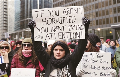 18日,包括首都华盛顿在内的美国多座城市爆发示威,人们抗议特朗普宣布“国家紧急状态”。