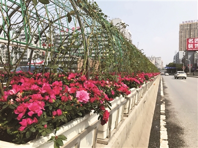 2月25日,市区邵水桥新增的立体绿化中,1200余盆红色的西洋杜鹃开得正艳,在阳光的照耀下引人瞩目,为过往司机、行人传递着春的气息。目前,市园林部门正加紧布置,陆续开展添加花卉品种、增加亮化景观、鲜花养护和病虫害预防等工作,以进一步完善该处立体绿化,让鲜花景观更美丽,邵水桥桥面夜景更绚丽。