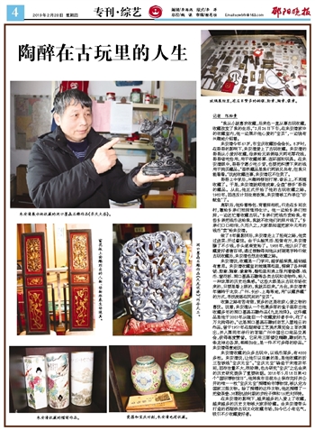 “我从小就喜欢收藏,后来也一直从事古玩收藏,收藏改变了我的生活。”2月26日下午,在朱安清家中的收藏室内,他一边展示他心爱的“宝贝”,一边饶有兴趣地介绍着。