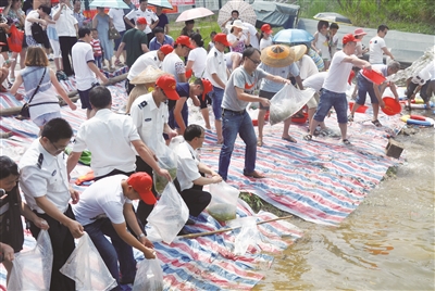 7月11日,邵东县畜牧水产局组织干部职工来到魏家桥镇开展增殖放流活动。至此,今年6月以来,该局共向河内放生草鱼、鲤鱼、鲫鱼、鲢鱼等鱼类180余万尾。
