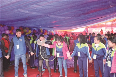12月4日上午,由深圳·和聚中企和邵阳县慈善会主办,县义工联合会协办的“心连心,传递爱,共同托起明天的太阳”大型公益活动走进邵阳县长乐乡长乐中学。当天,深圳·和聚中企的爱心人士给全校390名学生每人发放一套校服和2双运动鞋,共计价值16万余元,并资助了6名贫困学生。图为志愿者和学生以及家长正在进行呼啦圈互动游戏。