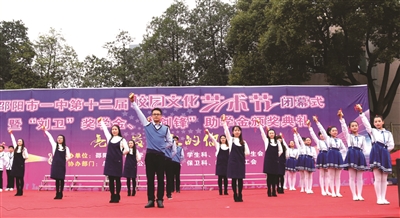 11月30日,市一中4000余名师生欢聚在学校运动场,隆重举行第十二届校园文化艺术节闭幕式暨“刘卫奖学金”“剑锋助学金”发放仪式。当天,该校39名组织管理能力突出的班团干部获得“刘卫奖学金”,100名品学兼优、家境贫寒的优秀学子获得“剑锋助学金”。