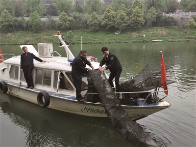 4月16日,市畜牧水产局渔政科联合市公安局水上治安大队在资江河巡查,查获地龙、密网等非法捕捞网具30余套。