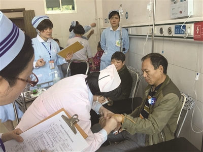 68岁的姚女士是32名“体验病人”之一,为她进行静脉穿刺的护士前后用时仅30秒。对此,姚女士给出了“非常满意”的评价,“我经常要打针的,知道自己的血管很细、很难找,这个小姑娘这么短时间就帮我打好了,非常不错!”
