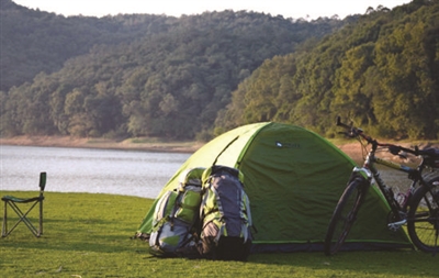 车子沿着蜿蜒的盘山公路缓慢前行,不久来到一个偏僻的小村庄,车子停稳后,我们去村民家中购买了一些新鲜蔬菜,稍作休息后,就朝着山上进发了。儿子像个小大人,抢着背自己的背包,这样走了近一个小时,来到了一处平坦地,不远处的水库波光粼粼,吹来习习凉风。登高远望,青山绿水赏心悦目,令人心旷神怡。杨大哥说,我们就在这里安营扎寨吧。孩子们站在绿油油的草地上,忙丢下手中的东西,在地上打滚戏耍。