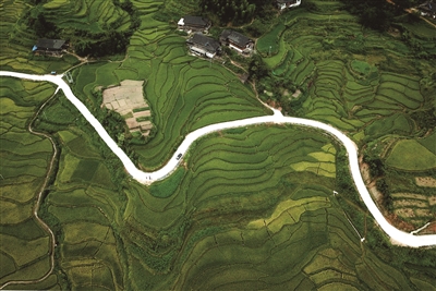五团镇恒州村是城步苗族自治县为数不多的特别难通道路的贫困村之一。近4年来,该村在国家商务部和县商务、扶贫、交通、移民等部门的大力支持下,累计投入资金900余万元,拉通扩宽村组道路12.9公里。8月中旬,恒州村全长7.6公里的主干道路硬化最后“收官”,至此城步所有贫困村全部通上了水泥路。图为8月30日航拍下的恒州村部分水泥路段。
