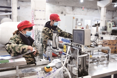 3月9日,北塔区状元洲街道的友洁纸品厂员工正在工作。该街道主动靠前服务,一手抓疫情防控、一手抓复工复产,全力为企业“保驾护航”。截至当日,状元洲街道工业企业复工率84%。