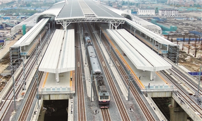 4月20日,南通至上海铁路线(通沪铁路)的检测列车从上海火车站出发,开始对通沪铁路赵甸至黄渡段进行联调联试,标志着工程建设取得重要进展,全线开通运营进入倒计时。通沪铁路是国家中长期铁路网规划“八纵八横”沿海通道的重要组成部分,该条铁路线的开通,对增强上海中心城市辐射带动作用、推动长江三角洲区域一体化发展具有重要意义。图为通沪铁路检测列车驶入南通西站(无人机照片)。