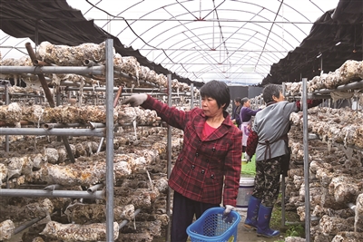 4月22日,邵阳云新高科农业开发有限公司新邵县寸石镇南岳村的香菇生产基地里,村民在采摘香菇。该公司今年种植香菇500多亩,同时与新邵县和邵阳县部分农户签订帮扶协议,提供技术指导并帮助销售香菇。